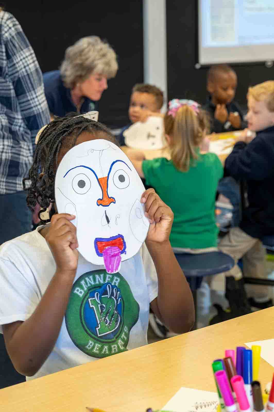 - Drama: Students created Maori masks.