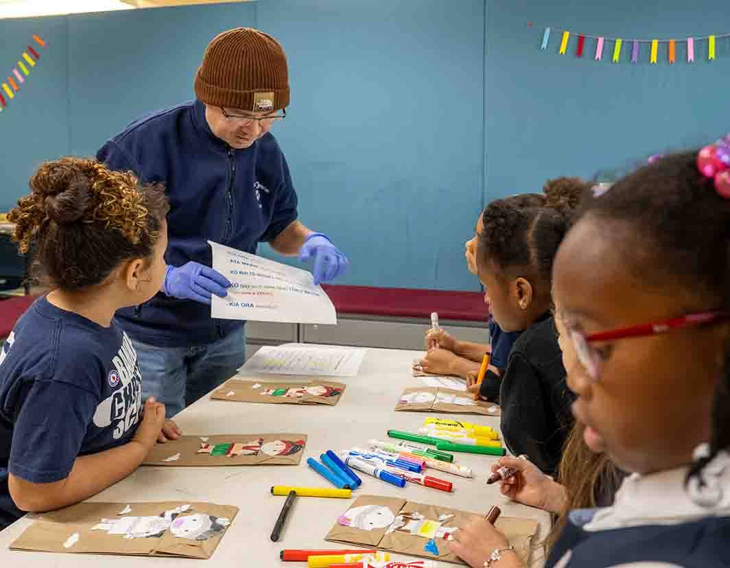 - Language: Students made Māori hand puppets and practiced using Māori words.